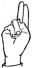 На ћирилици написано МИНА МУМАЛО састоји се из 10 слова [?]. Исписано ћириличном једноручном азбуком за глувонеме: